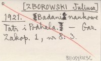 [ZBOROWSKI Juliusz] 1921 Badania naukowe Tatr i Podhala.