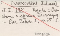 J. Z. [ZBOROWSKI Juliusz] 1921 Ugoda z Czechami a sprawa Jaworzyny.