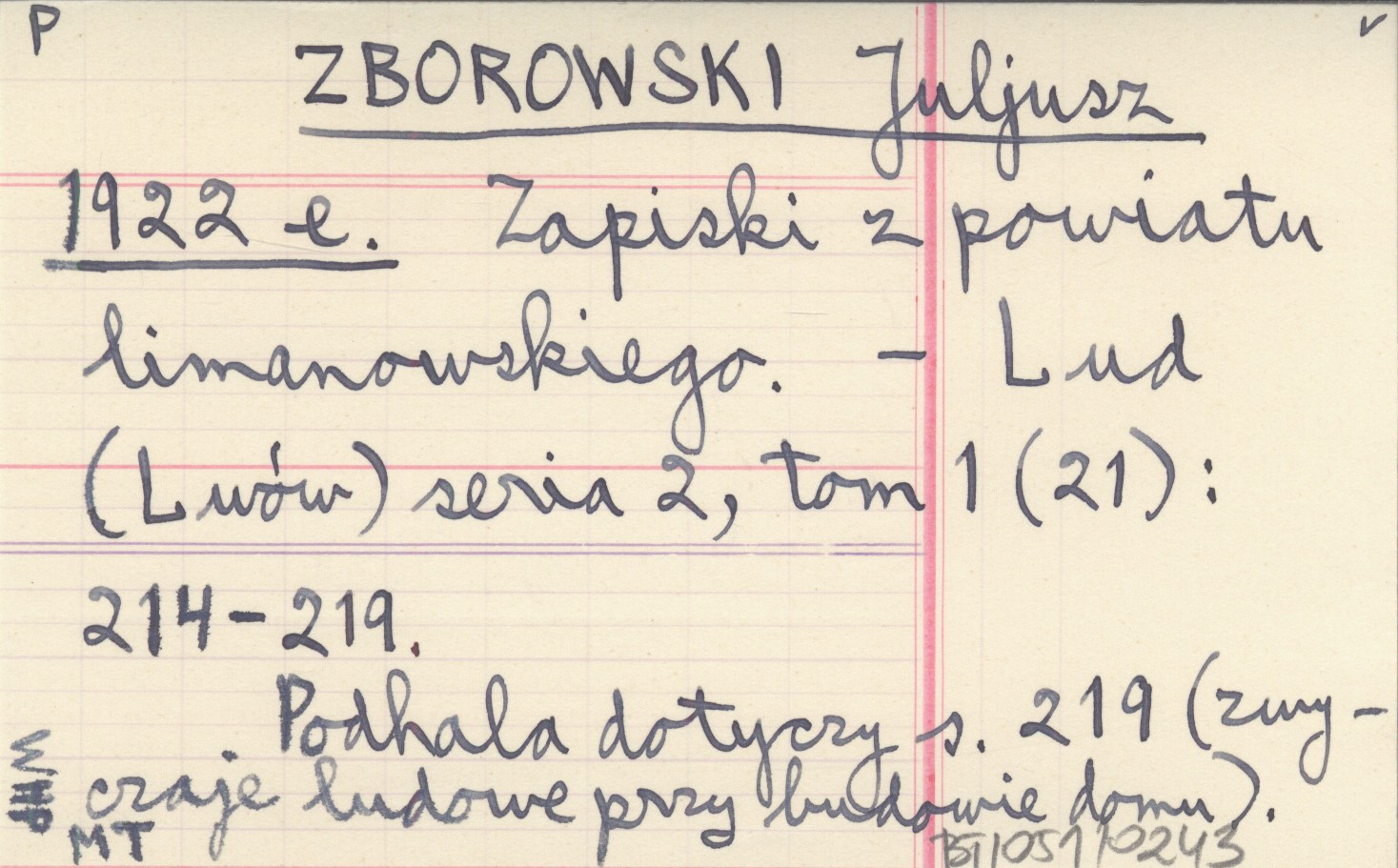 Lud (Lwów) , Ser. 2, t. 1 (21): 214-219. Podhala dotyczy s. 219 (zwyczaje ludowe przy budowie domu).