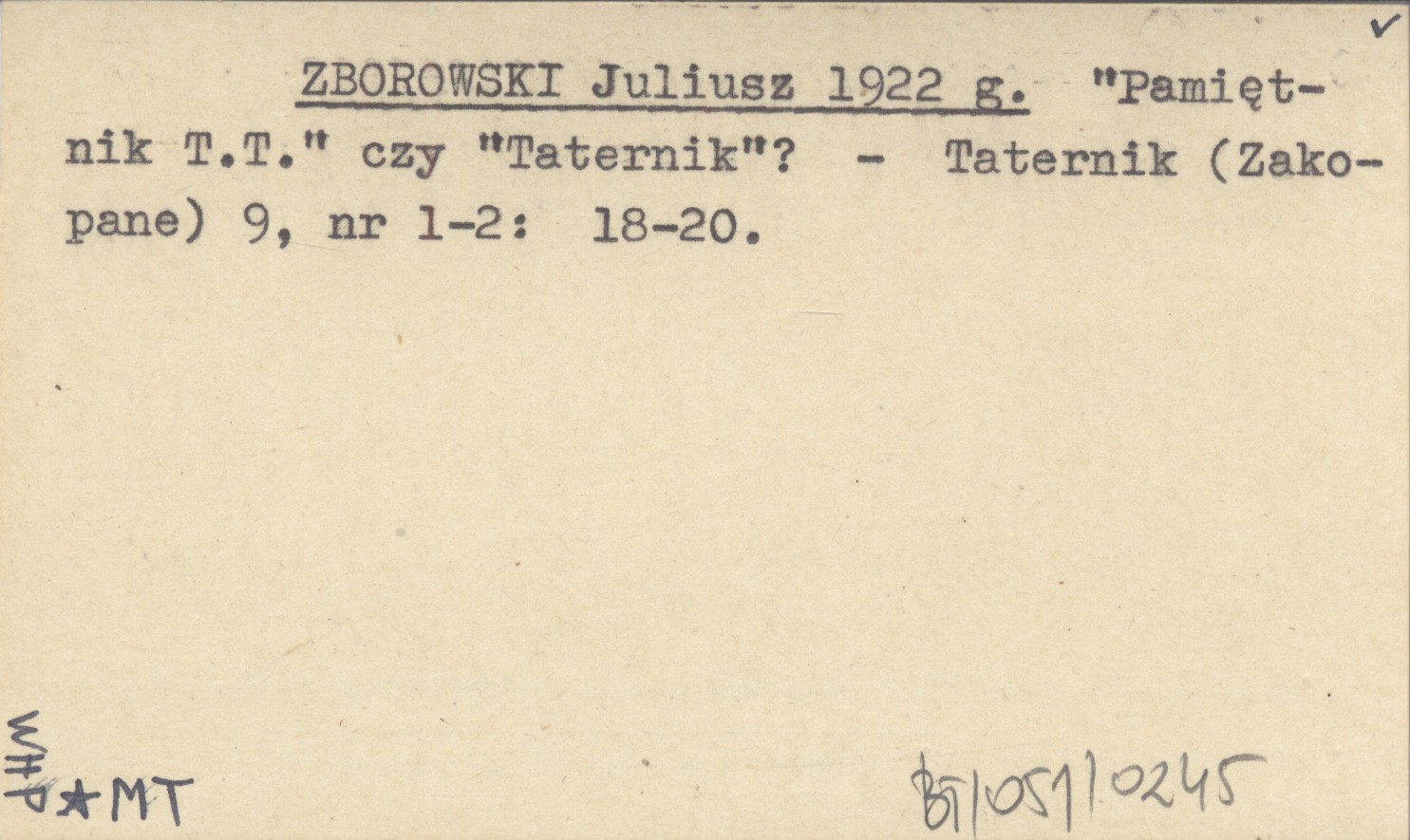 ZBOROWSKI Juliusz 1922 g "Pamiętnik T.T." czy "Taternik"?