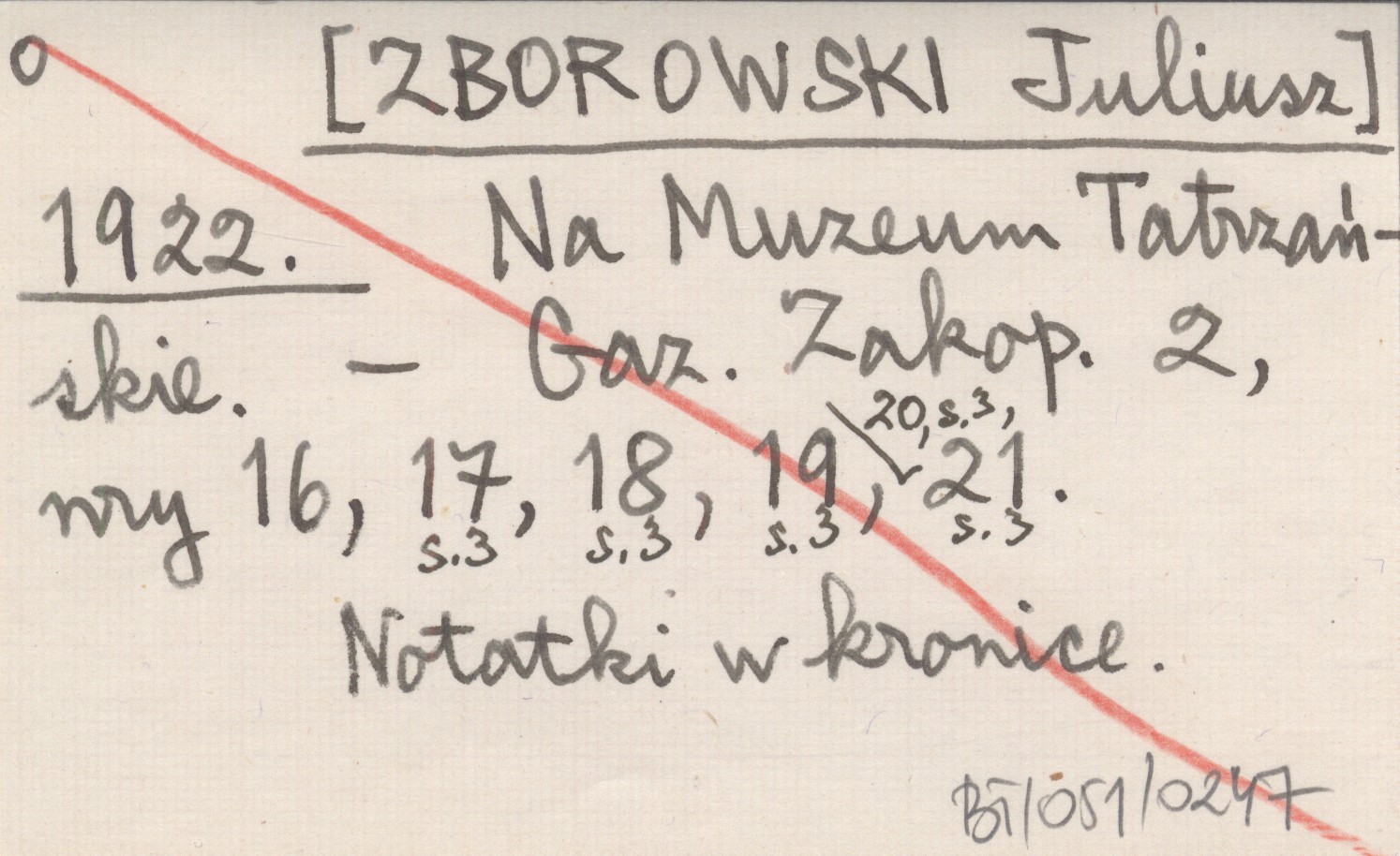 Gazeta Zakopiańska, 2, nr 16 ; nr 17: 3 ; nr 18: 3 ; nr 19: 3 ; nr 20: 3 ; nr 21: 3. Notatki w kronice.