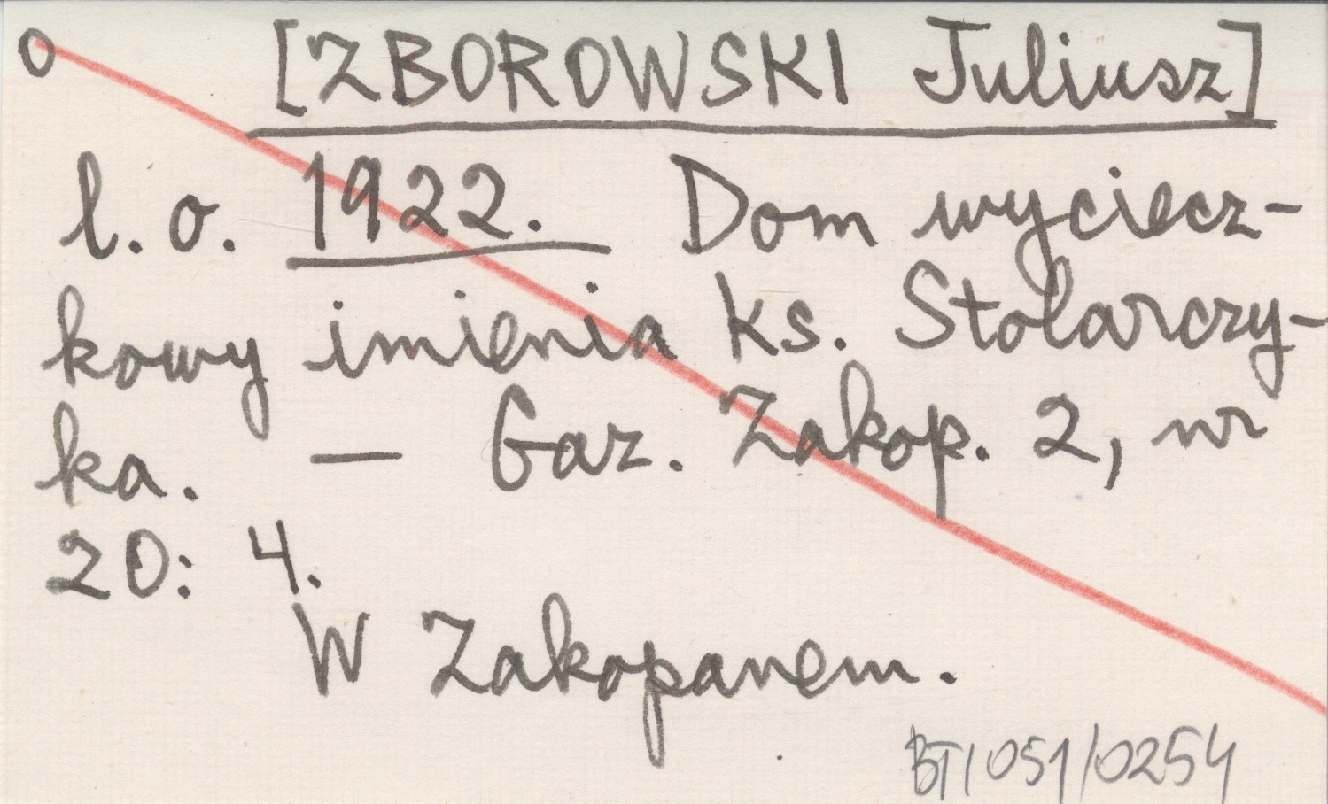 l.o. [ZBOROWSKI Juliusz] 1922 Dom wycieczkowy imienia ks. Stolarczyka.