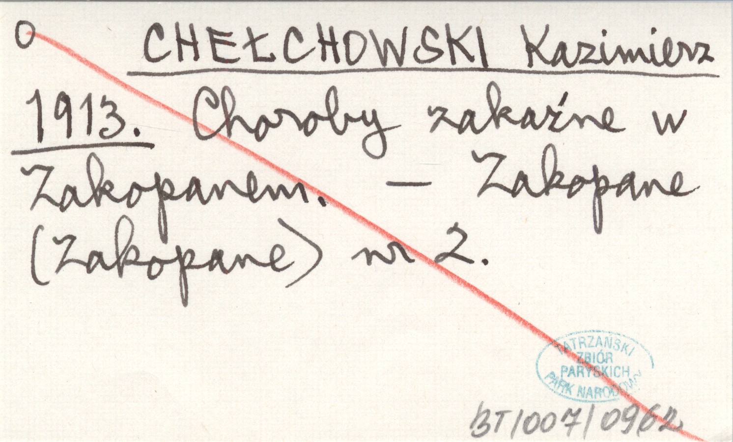 CHEŁCHOWSKI Kazimierz 1913 Choroby zakaźne w Zakopanem.