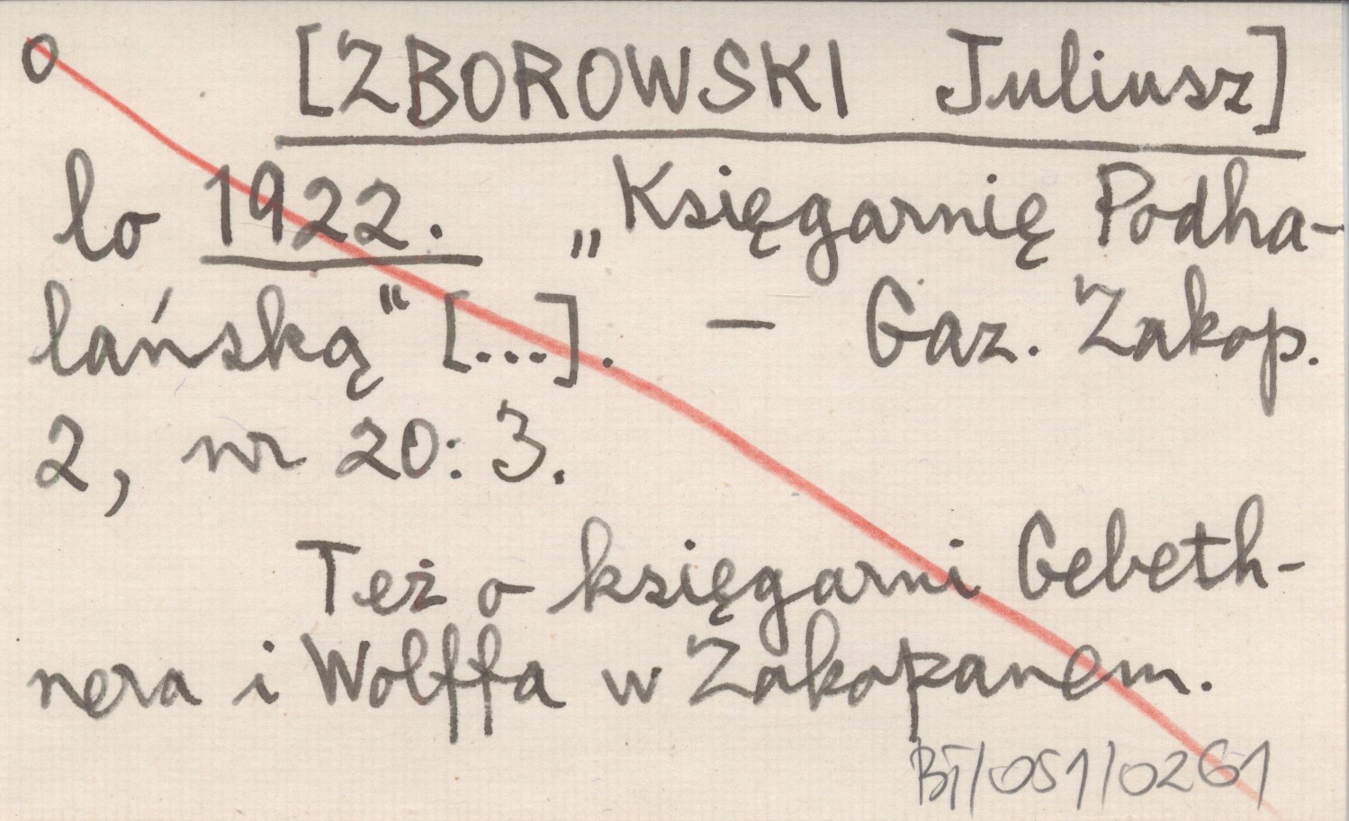 lo [ZBOROWSKI Juliusz] 1922 "Księgarnię Podhalańską" [...].