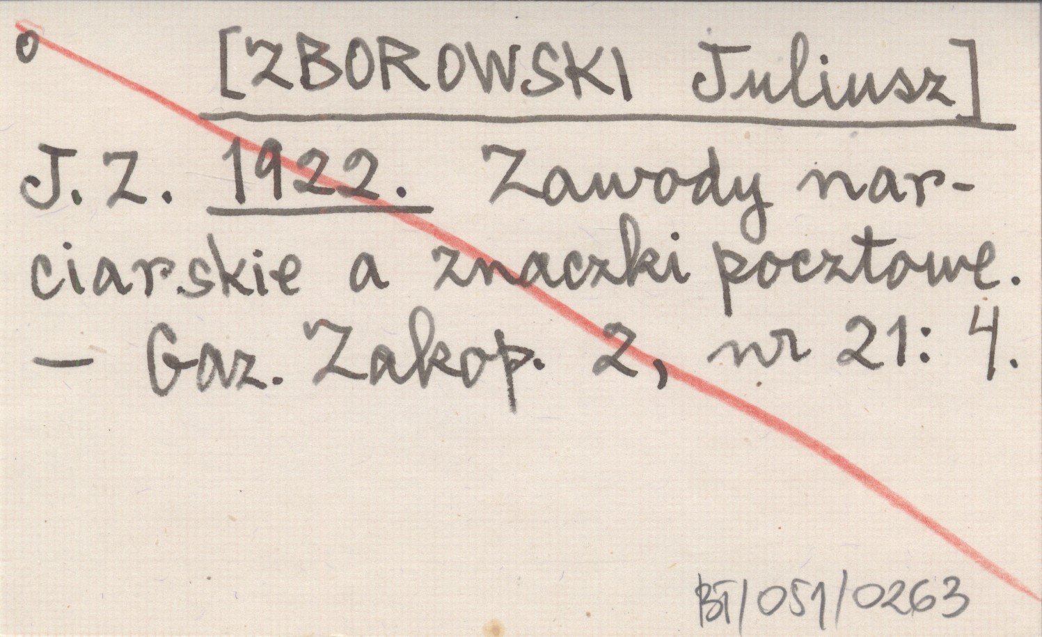J. Z. [ZBOROWSKI Juliusz] 1922 Zawody narciarskie a znaczki pocztowe.