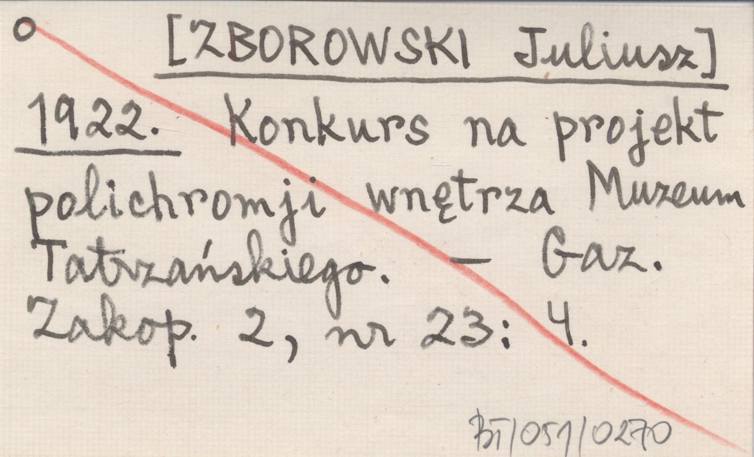 [ZBOROWSKI Juliusz] 1922 Konkurs na projekt polichormji wnętrza Muzeum Tatrzańskiego.