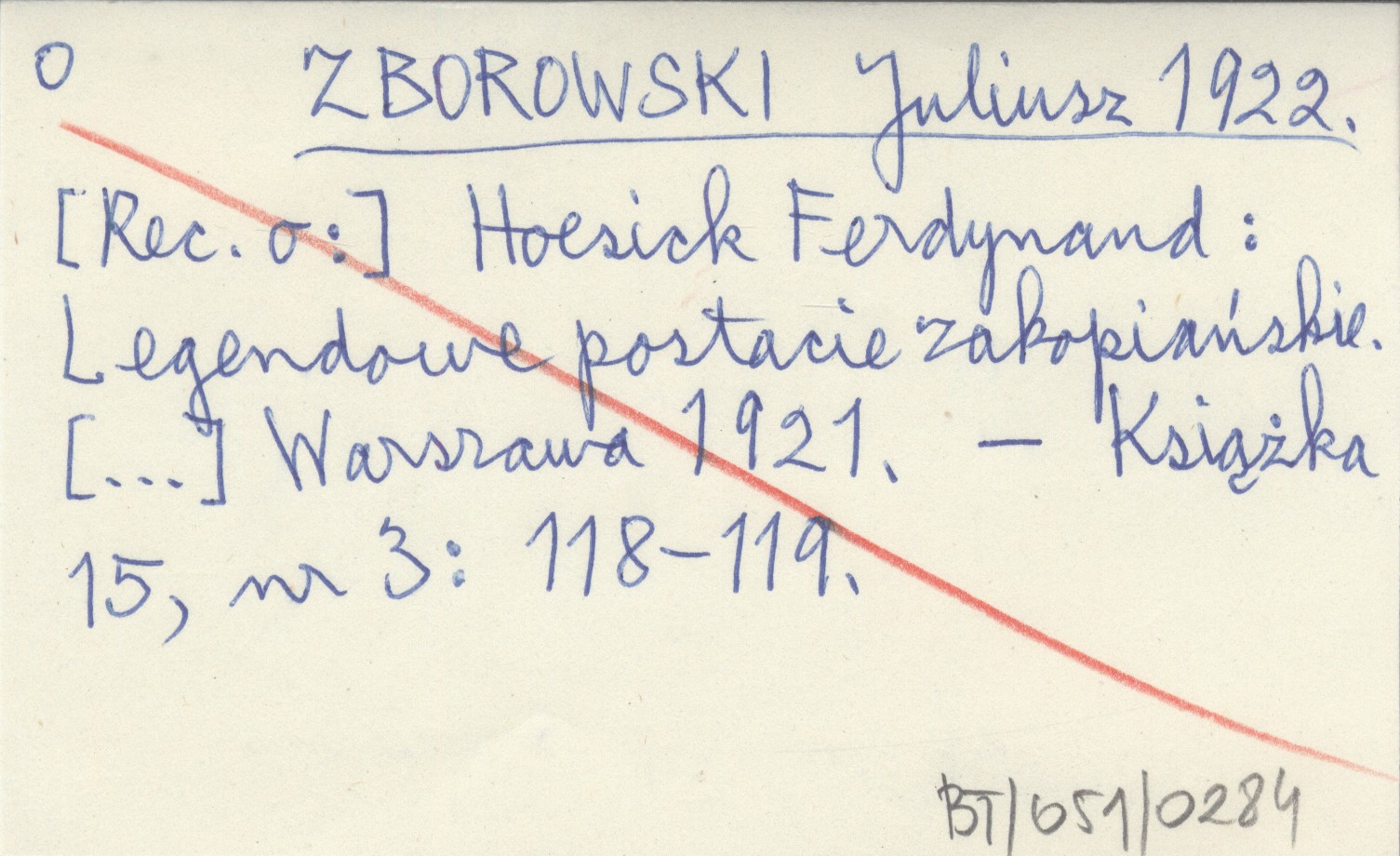 [Rec. o:] Hoesick Ferdynand: Legendowe postacie zakopiańskie. [...] Warszawa 1921.