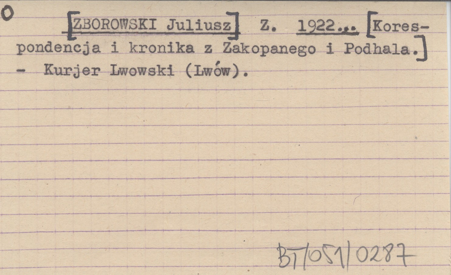 Z. [ZBOROWSKI Juliusz] 1922... [Korespondencja i kronika z Zakopanego i Podhala.]