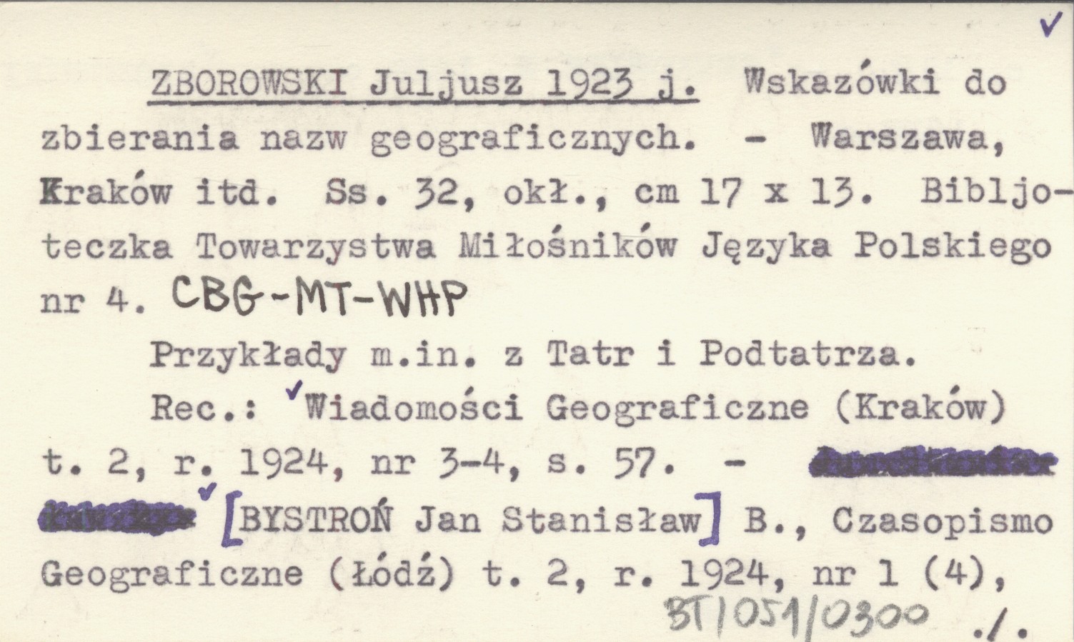ZBOROWSKI Juljusz 1923 j Wskazówki do zbierania nazw geograficznych.