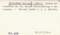 [ZBOROWSKI Juliusz] 1923 k Muzeum Tatrzańskie im. dr. Tytusa Chałubińskiego w Zakopanem.