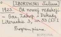[ZBOROWSKI Juliusz] 1923 Od nowej redakcji.