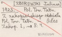 [ZBOROWSKI Juliusz] 1923 Pol. Tow. Tatrz. Z zakopiańskiego oddziału Pol. Tow. Tatrz.