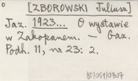 Jaz. [ZBOROWSKI Juliusz] 1923... O wystawie w Zakopanem.