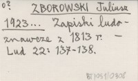 ZBOROWSKI Juliusz 1923... Zapiski ludoznawcze z 1813 r.