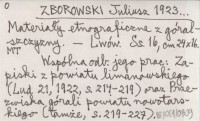ZBOROWSKI Juliusz 1923... Materiały etnograficzne z góralszczyzny.