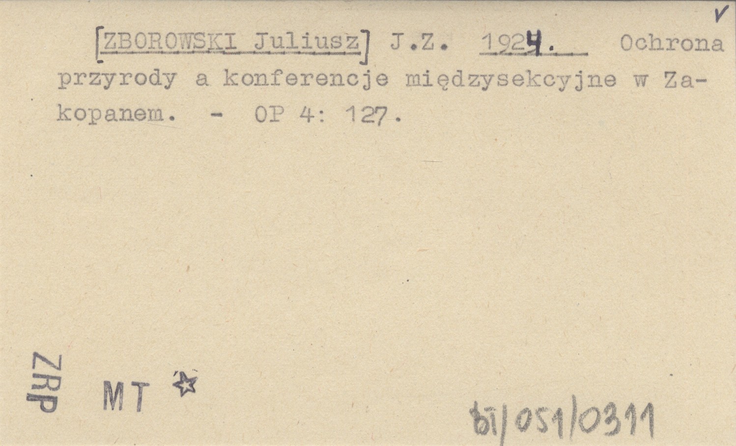 J. Z. [ZBOROWSKI Juliusz] 1924 Ochrona przyrody a konferencje międzysekcyjne w Zakopanem.