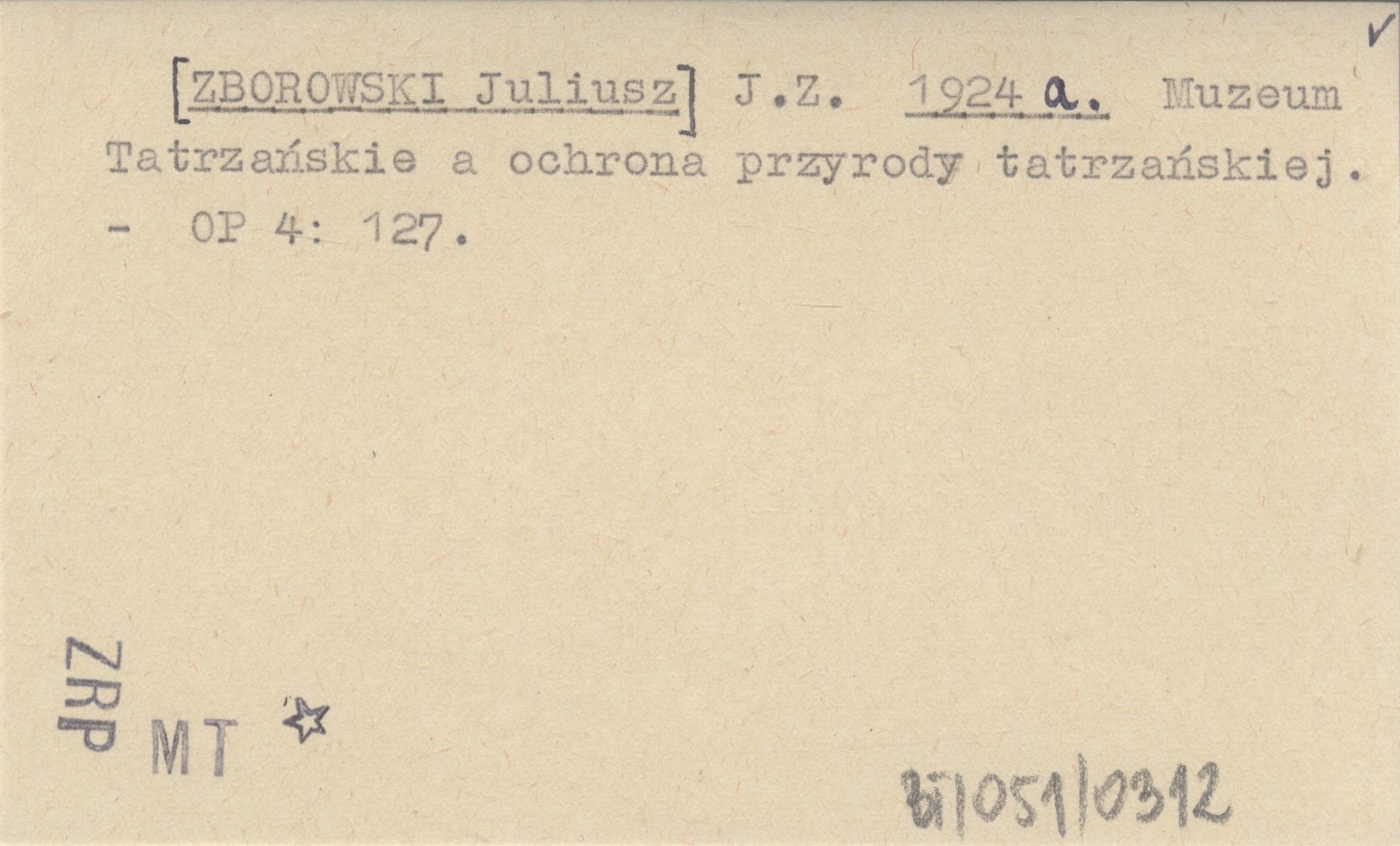 J. Z. [ZBOROWSKI Juliusz] 1924 a Muzeum Tatrzańskie a ochrona przyrody tatrzańskiej.