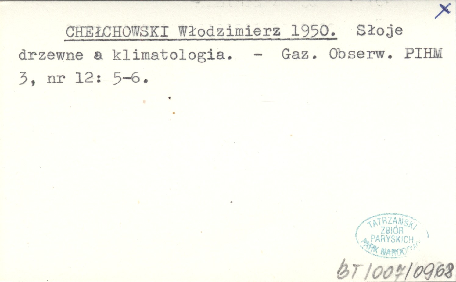 CHEŁCHOWSKI Włodzimierz 1950 Słoje drzewne a klimatologia.