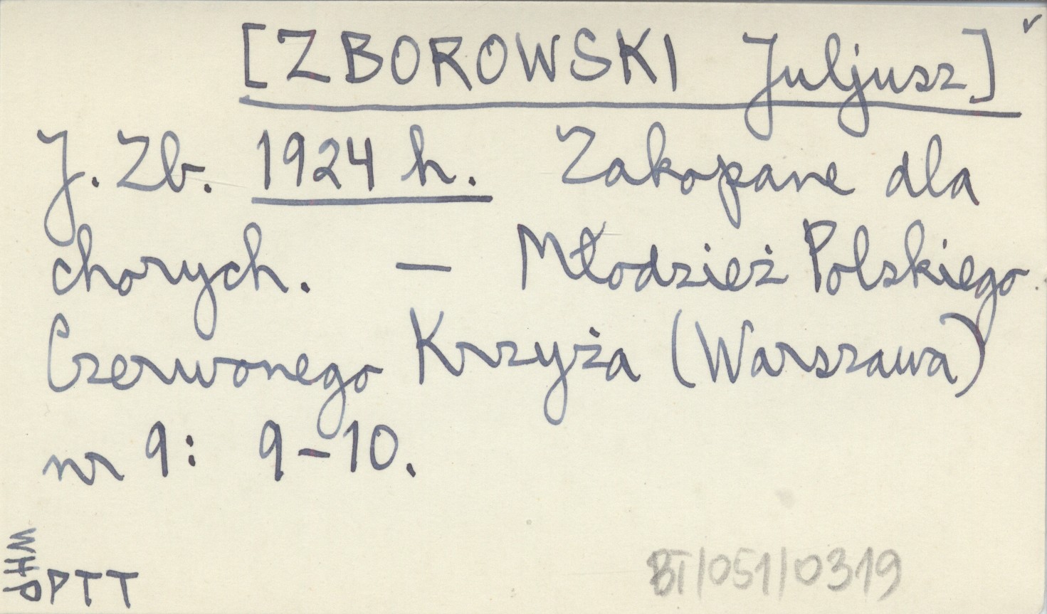J. Zb. [ZBOROWSKI Juljusz] 1924 h Zakopane dla chorych.