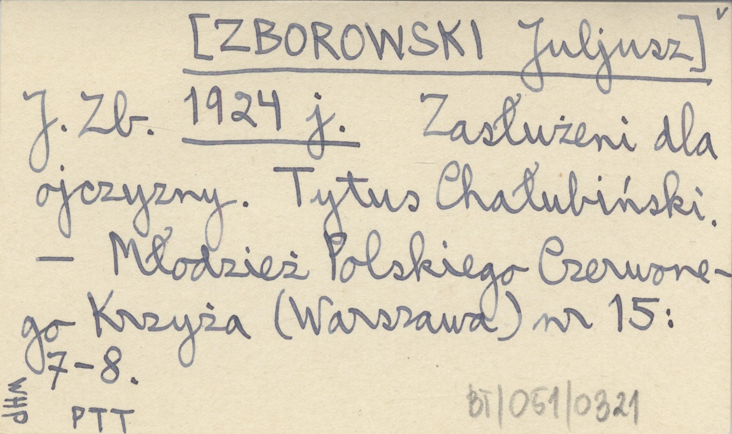 J. Zb. [ZBOROWSKI Juljusz] 1924 j Zasłużeni dla ojczyzny. Tytus Chałubiński.