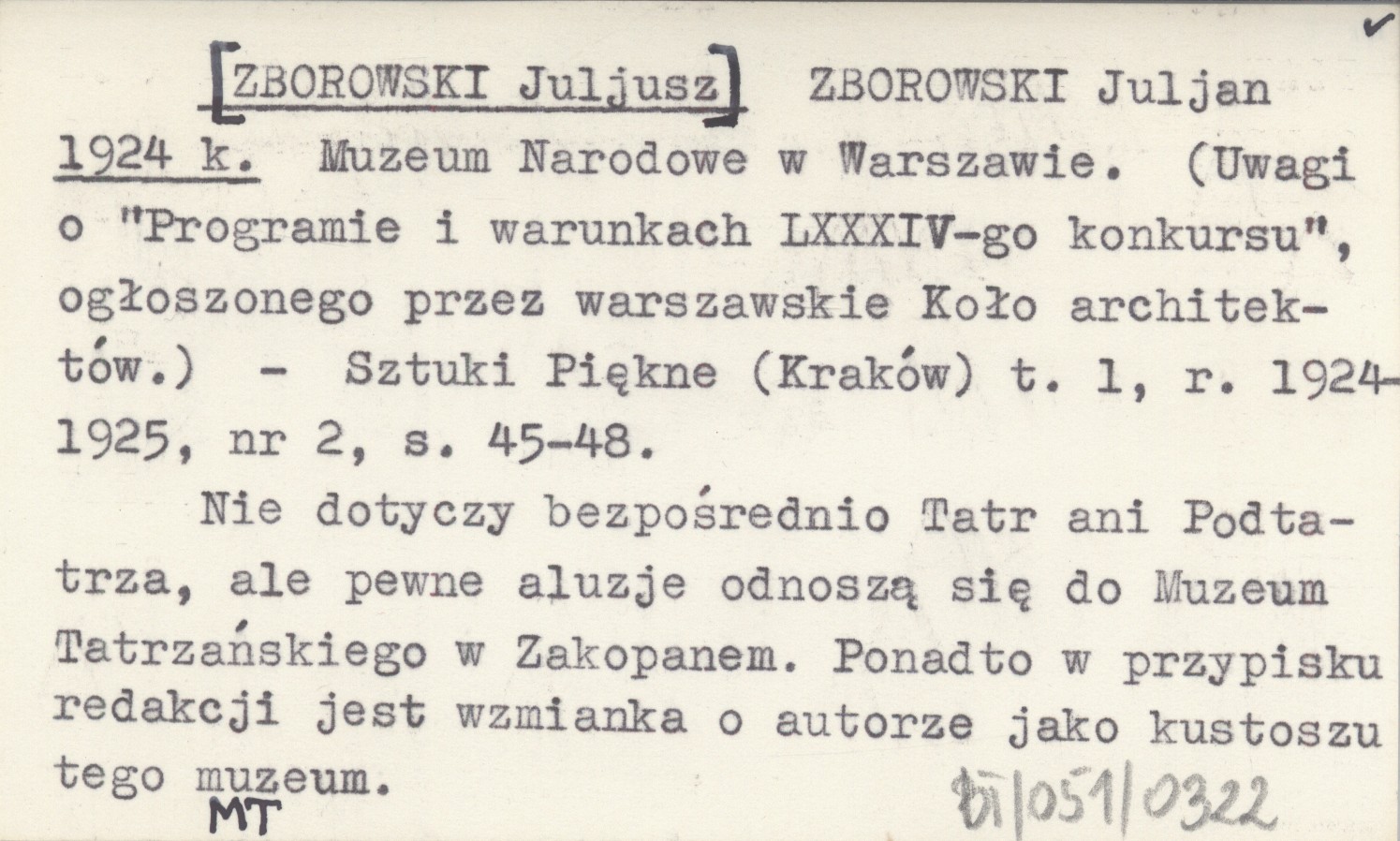 ZBOROWSKI Juljan [ZBOROWSKI Juljusz] 1924 k Muzeum Narodowe w Warszawie. (Uwagi o "Programie i warunkach LXXXIV-go konkursu", ogłoszonego przez warszawskie Koło architektów).