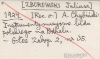 [ZBOROWSKI Juliusz] 1924 [Rec. o:] A. Chybiński: Instrumenty muzyczne ludu polskiego na Podhalu.