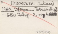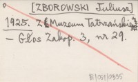 [ZBOROWSKI Juliusz] 1925 Z Muzeum Tatrzańskiego.