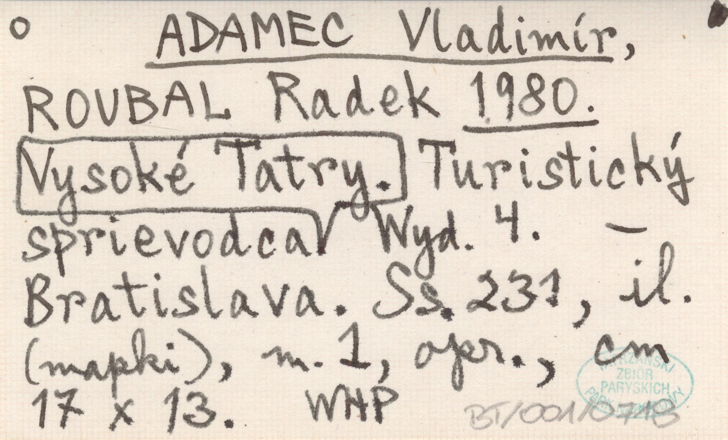 ADAMEC Vladimír ROUBAL, Radek. ; 1980 Turistický sprievodca Vysoké Tatry.