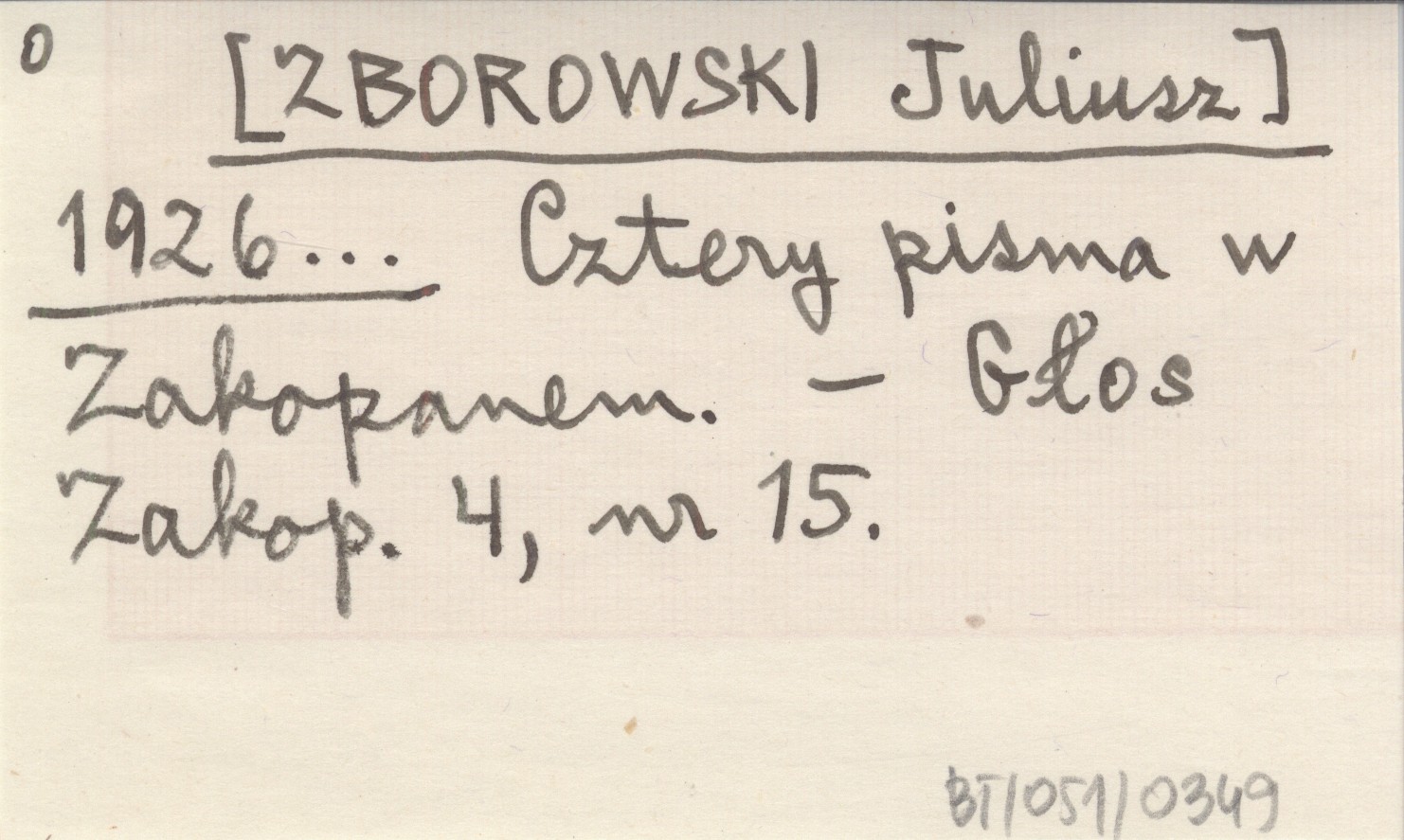 [ZBOROWSKI Juliusz] 1926... Cztery pisma w Zakopanem.