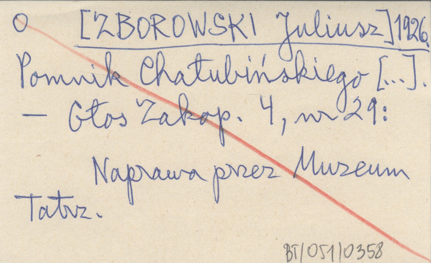 [ZBOROWSKI Juliusz] 1926 Pomnik Chałubińskiego [...].