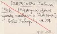 [ZBOROWSKI Juliusz] 1926 Międzynarodowe zjazdy naukowe w Zakopanem.