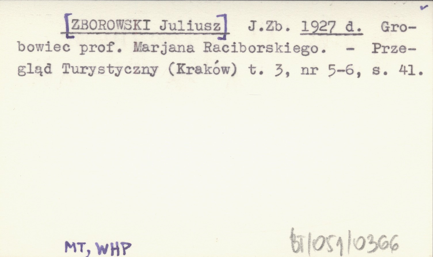 J. Zb. [ZBOROWSKI Juliusz] 1927 d Grobowiec prof. Marjana Raciborskiego.