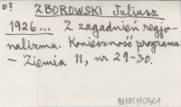 ZBOROWSKI Juliusz 1926... Z zagadnień regjonalizmu. Konieczność programu.