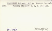 ZBOROWSKI Juljusz 1927 a Muzeum Tatrzańskie.