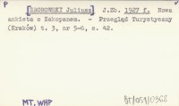 J. Zb. [ZBOROWSKI Juliusz] 1927 f Nowa ankieta o Zakopanem.