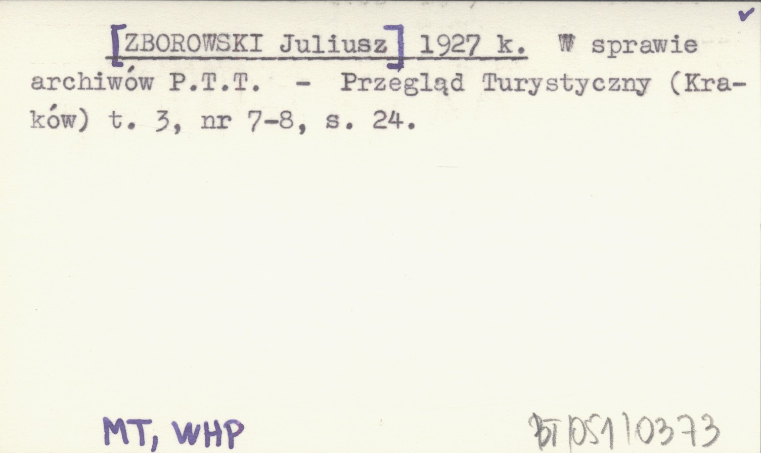[ZBOROWSKI Juliusz] 1927 k W sprawie archiwów P.T.T.