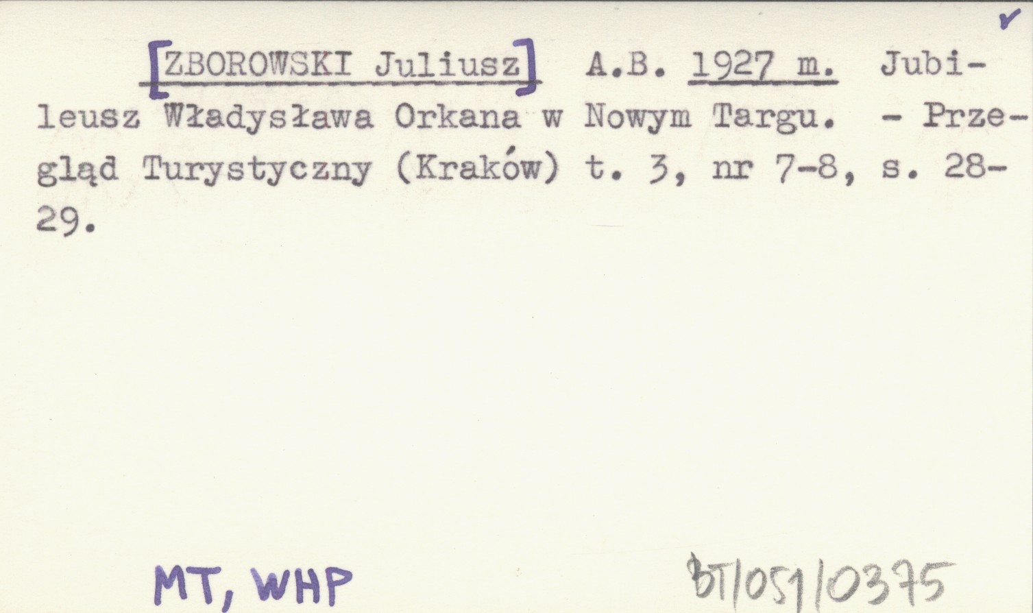 A. B. [ZBOROWSKI Juliusz] 1927 m Jubileusz Władysław Orkana w Nowym Targu.