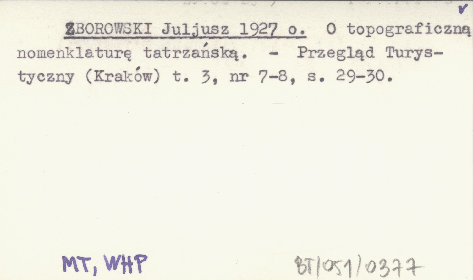 ZBOROWSKI Juliusz 1927 o O topograficzną nomenklaturę tatrzańską.