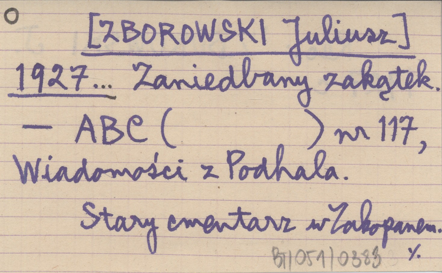 Wiadomości z Podhala, Nr 117. Stary cmentarz w Zakopanem. REC: ZBOROWSKI J. 1927 c