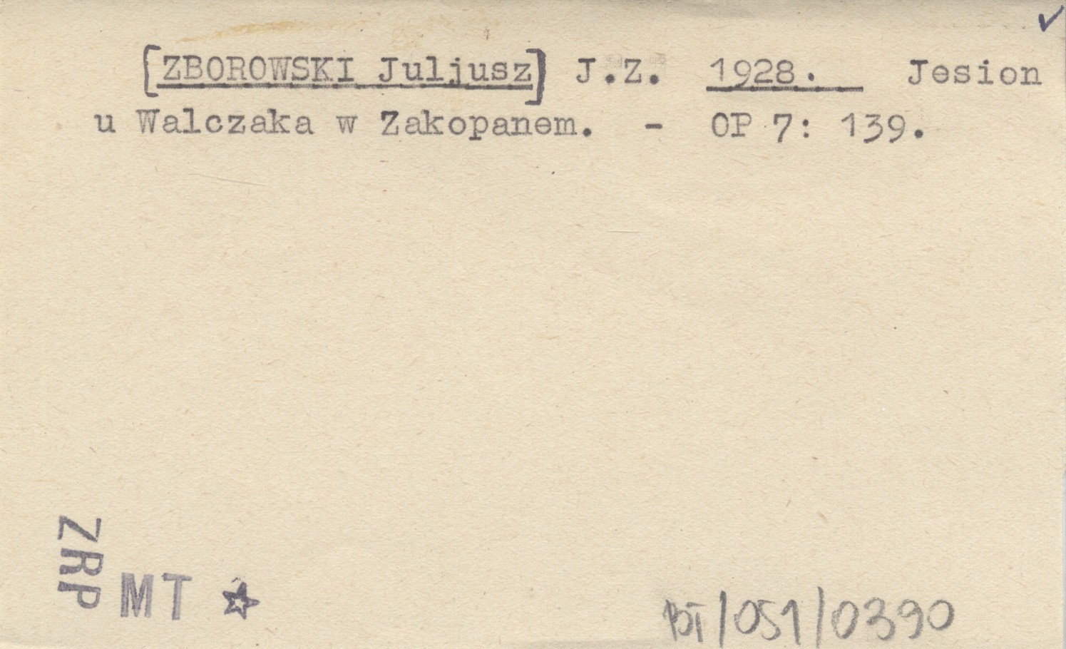 J. Z. [ZBOROWSKI Juljusz] 1928 Jesion u Walczaka w Zakopanem.