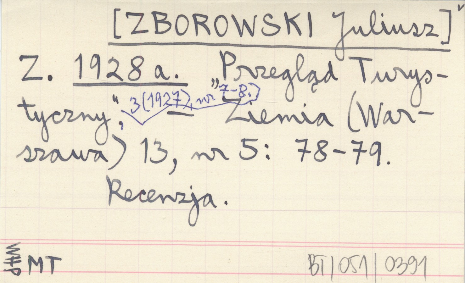 Z. [ZBOROWSKI Juliusz] 1928 a "Przegląd Turystyczny", 3 (1927), nr 7-8.