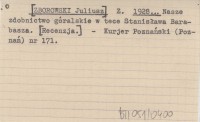 ZBOROWSKI Juljusz 1928 d [Rec. z:] Barabasz Stanisław: "Sztuka ludowa na Podhalu. Część I. i II. Orawa i Spisz". Lwów, Książnica-Atlas, 1928.