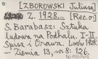 Z. [ZBOROWSKI Juliusz] 1928... [Rec. o:] S. Barabasz: Sztuka ludowa na Podhalu. I-II. Spisz i Orawa. Lwów 1928.