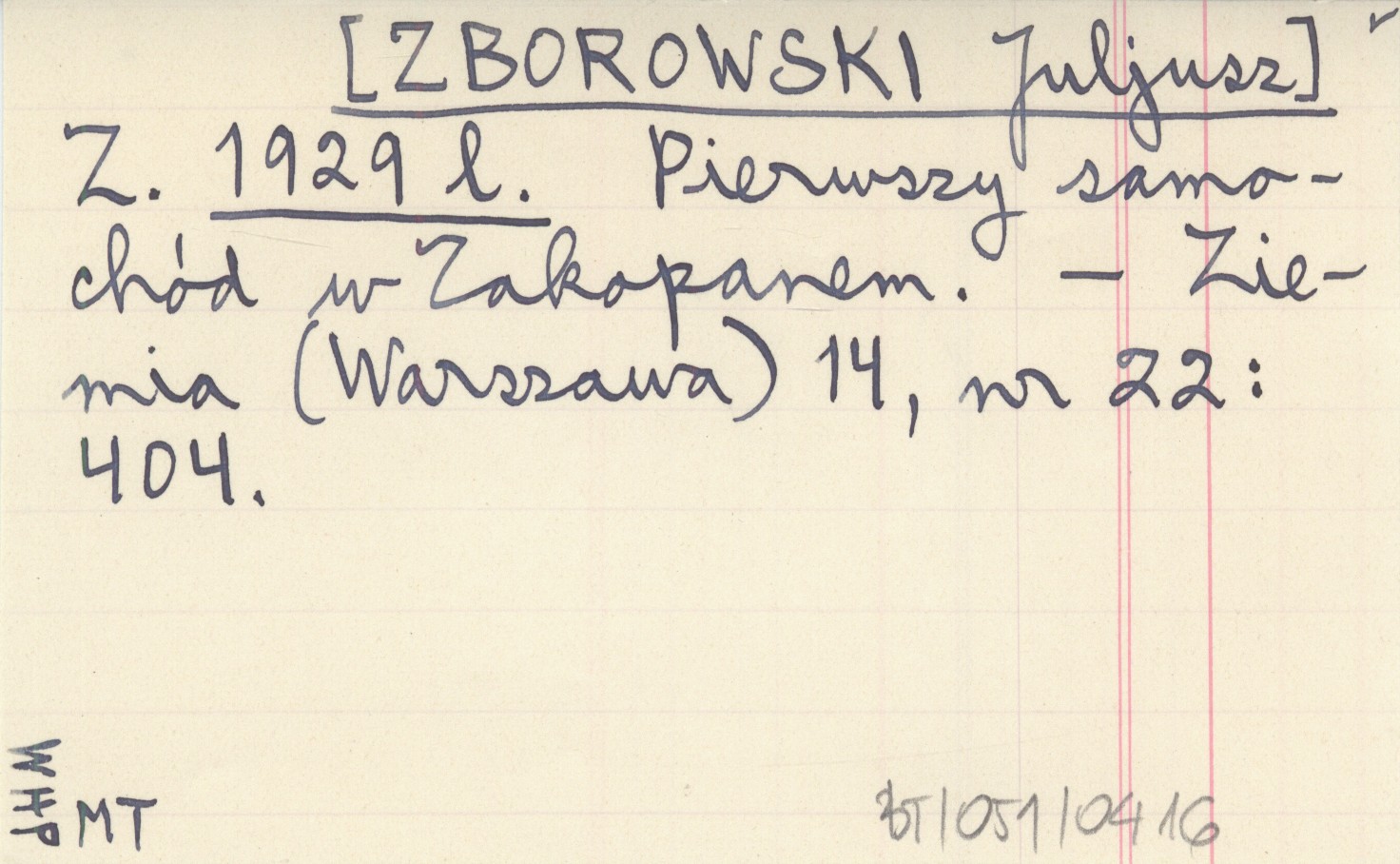 Z. [ZBOROWSKI Juljusz] 1929 l Pierwszy samochód w Zakopanem.