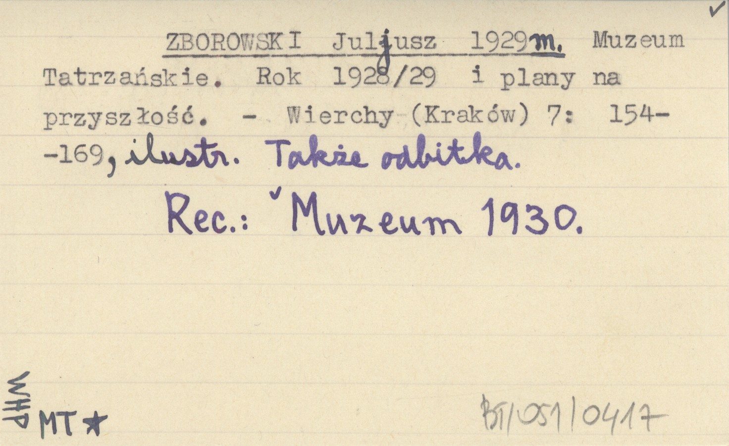 Wierchy (Kraków) , 7: 154-169, il. Także odbitka. REC: Muzeum 1930