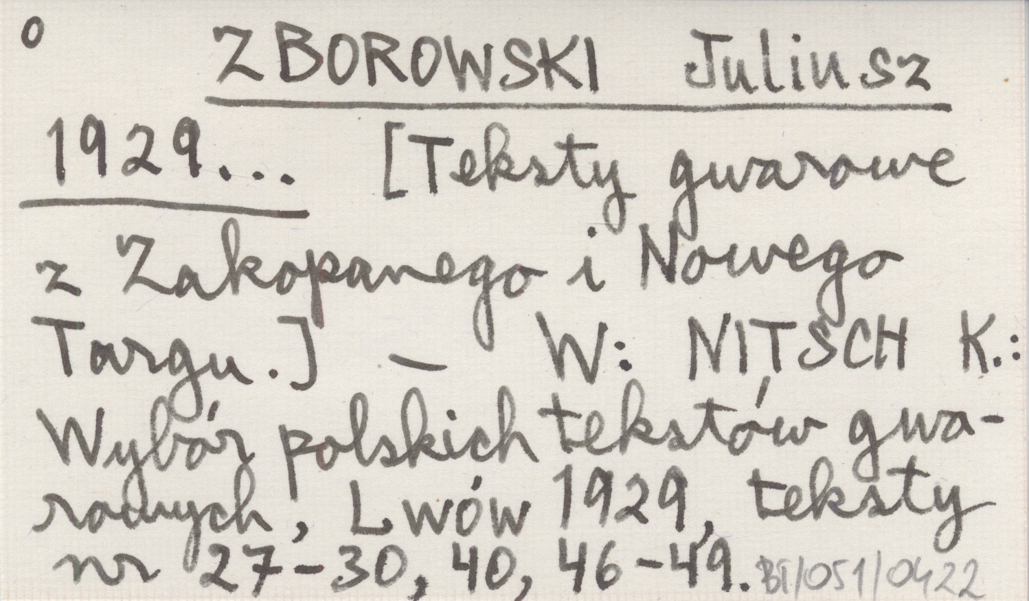 ZBOROWSKI Juliusz 1929... [Teksty gwarowe z Zakopanego i Nowego Targu.]