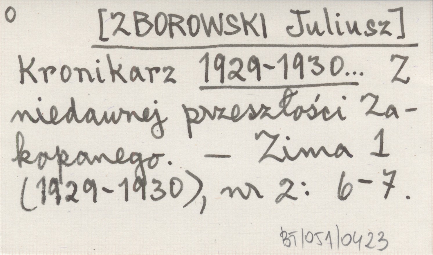 Kronikarz [ZBOROWSKI Juliusz] 1929-1930... Z niedawnej przeszłości Zakopanego.