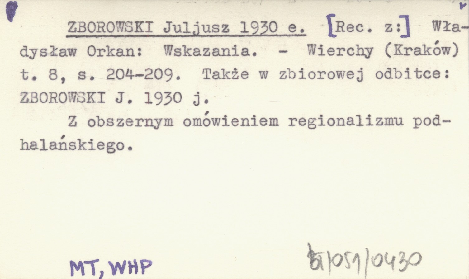 Wierchy (Kraków) , T. 8: 204-209. Z obszernym omówieniem regionalizmu podhalańskiego. Także w zbiorowej odbitce: ZBOROWSKI J. 1930 j.