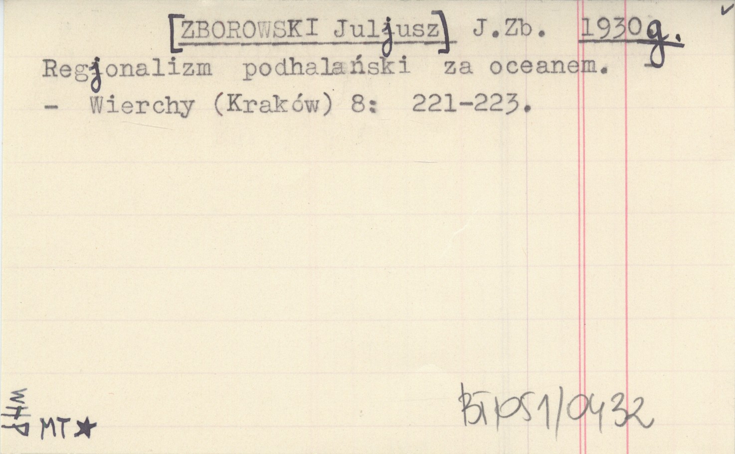 J. Zb. [ZBOROWSKI Juljusz] 1930 g Regjonalizm podhalański za oceanem.