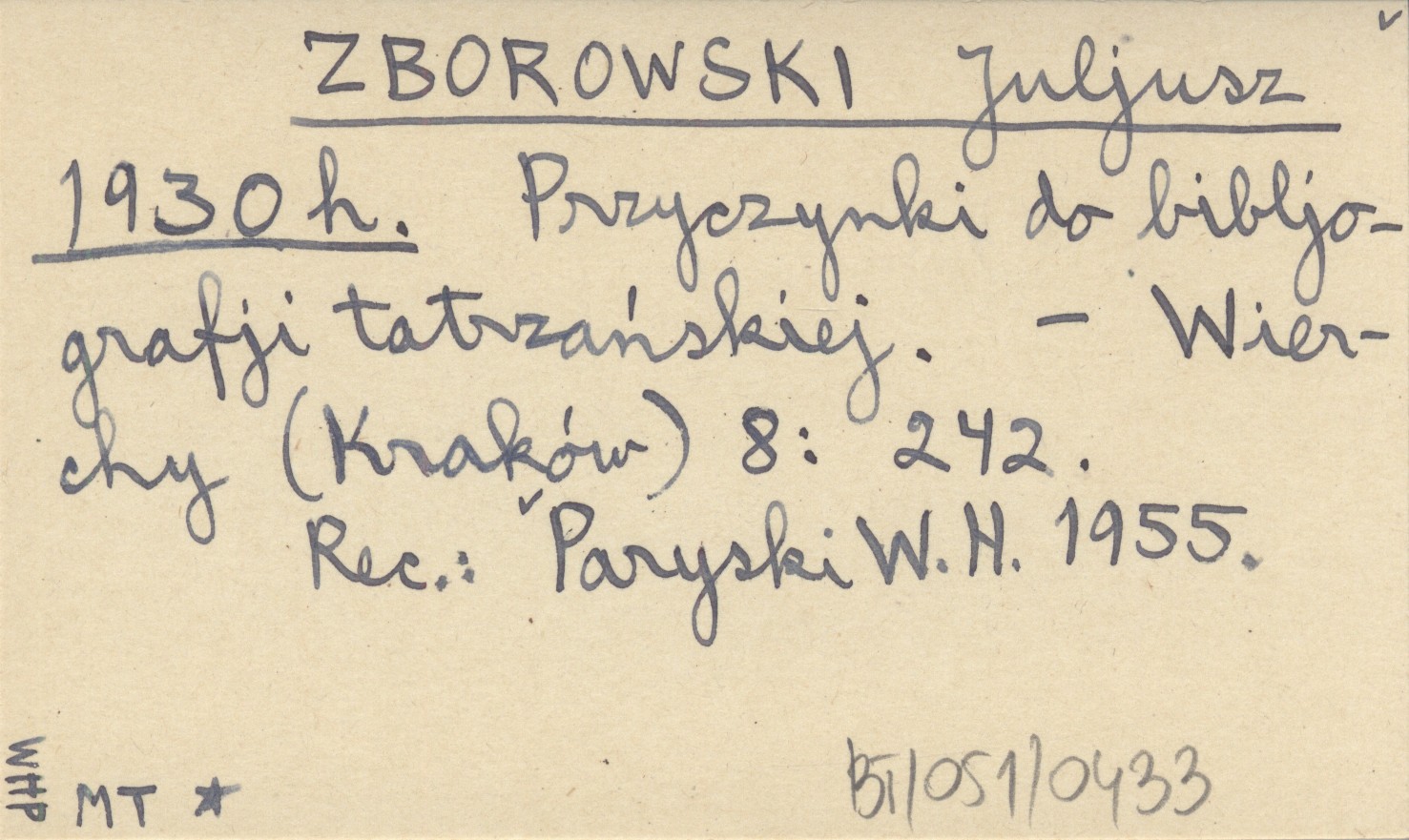 ZBOROWSKI Juljusz 1930 h Przyczynki do bibljografji tatrzańskiej.